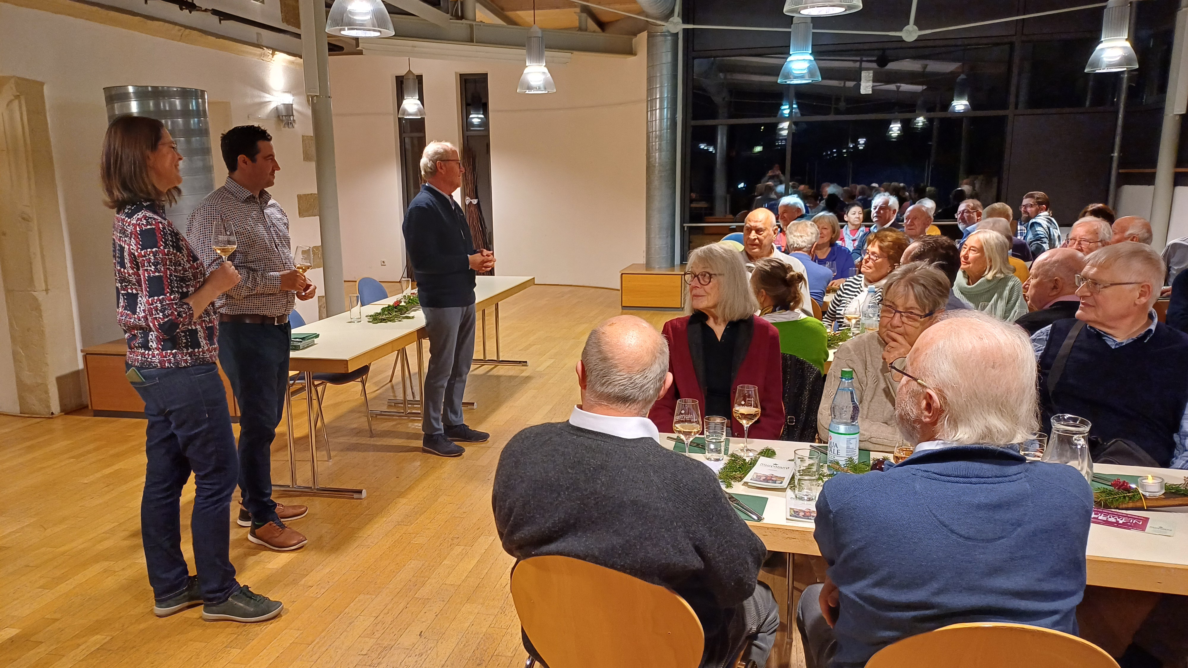 Da die Gläser immer sehr großzügig eingeschenkt wurden, waren die von Familie Packeiser und Brigitte Kuntzer wieder liebevoll hergerichteten Vesperteller und der später kredenzte Hefekranz (und natürlich ausreichend Mineralwasser) sehr wichtig zum Ausgleich. Mit überaus guter Stimmung vergingen über drei Stunden wie im Flug. Wir bedanken uns ganz herzlich bei allen, die beim Auf- und oder Abbau, in der Küche und sonst irgendwie geholfen und so den Abend für alle unvergesslich gemacht haben.
